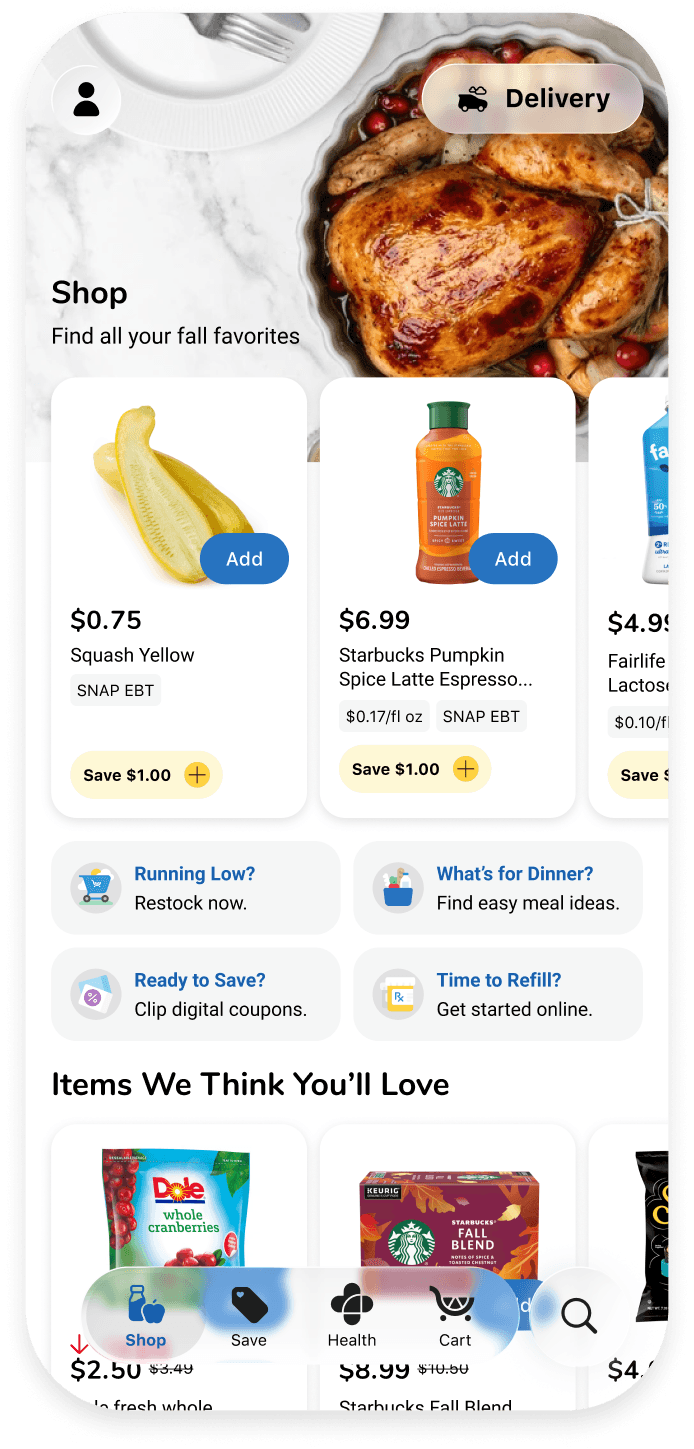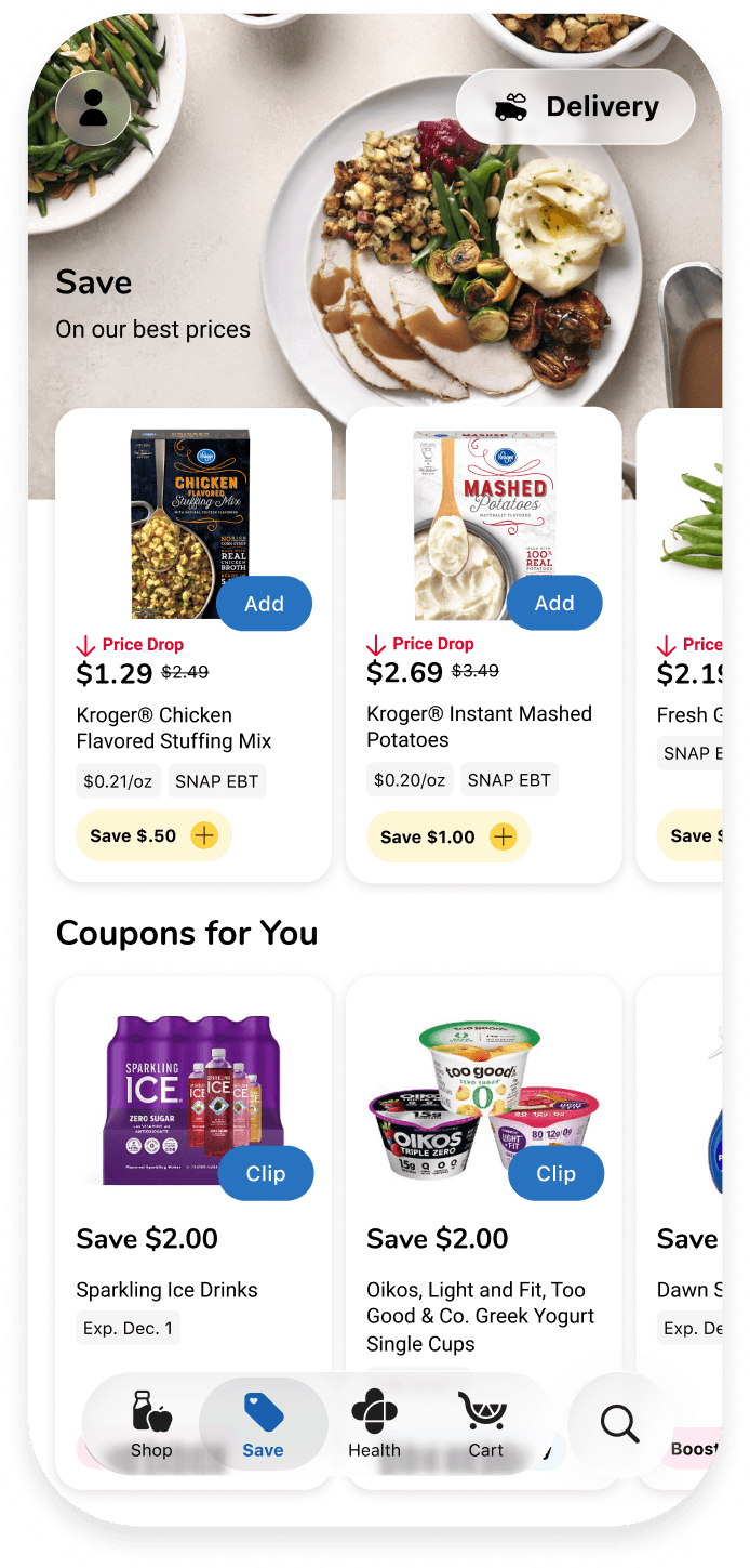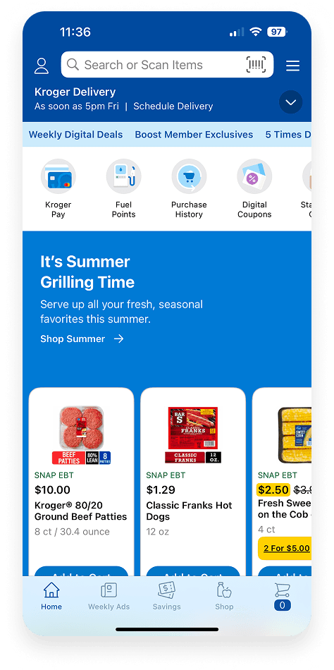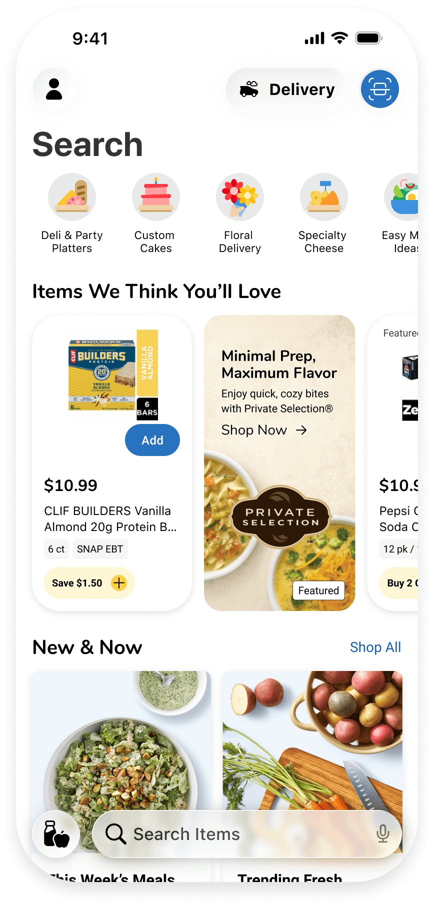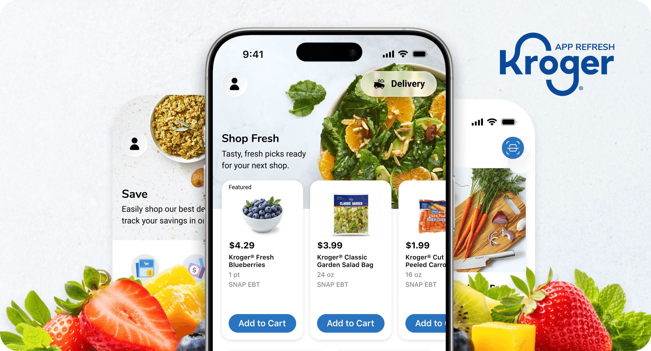 Each platform was designed intentionally for its native patterns, but we layered in our brand system to keep the experience cohesive and unmistakably Kroger, just with a "refresh" look.