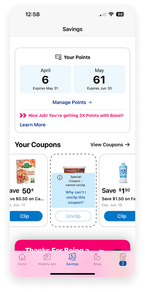 When savings aren’t easy to find or use, customers may miss opportunities to save money, reducing engagement and diminishing the perceived value of the app.