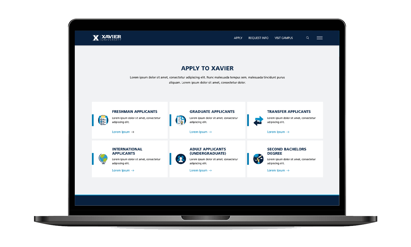 Without clear wayfinding or prioritized content, users struggled to find what mattered most. The experience felt disjointed and overwhelming, making it harder for prospective students to explore programs or understand what Xavier had to offer at a glance.